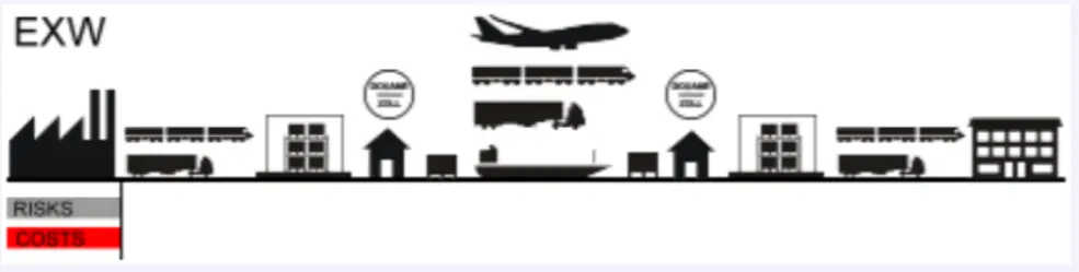 (Ex works) - Gruppe E (Abhohlklause) EXW ist die für den Expoteuer günstigste Klausel. Er stellt die Ware zum vereinbaten Zeitpunkt auf seinem Geflände bereit und hat damit seine Pflicht aus dem Kaufvertrag erfüllt.