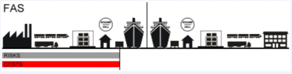(Free alongside ship) - Gruppe F (Haupttransport zahlt Käufer) Der Verkäufer liefert die Waren bis zur Längsseite des Schiffes, im benannten Verschiffungshafen.